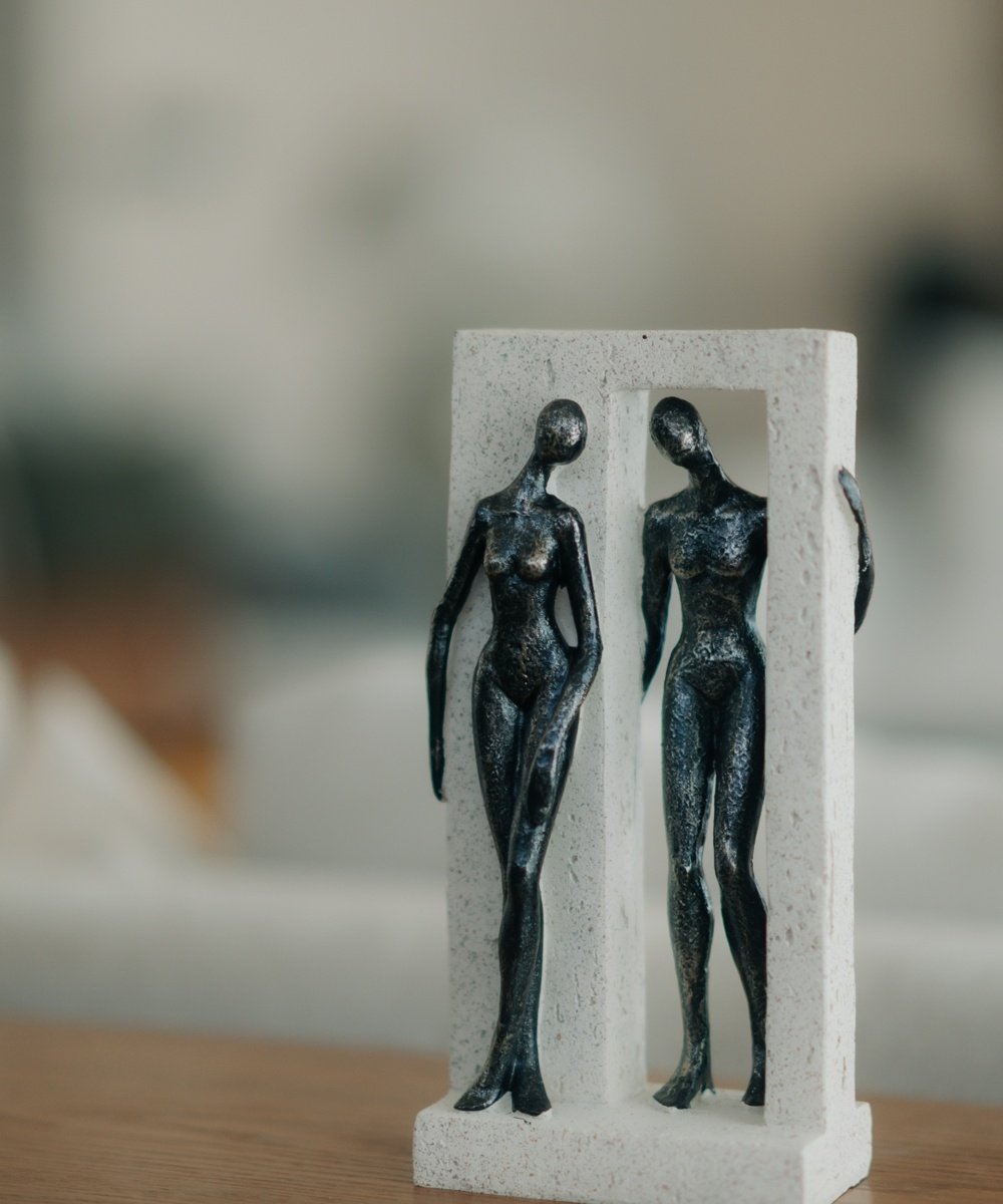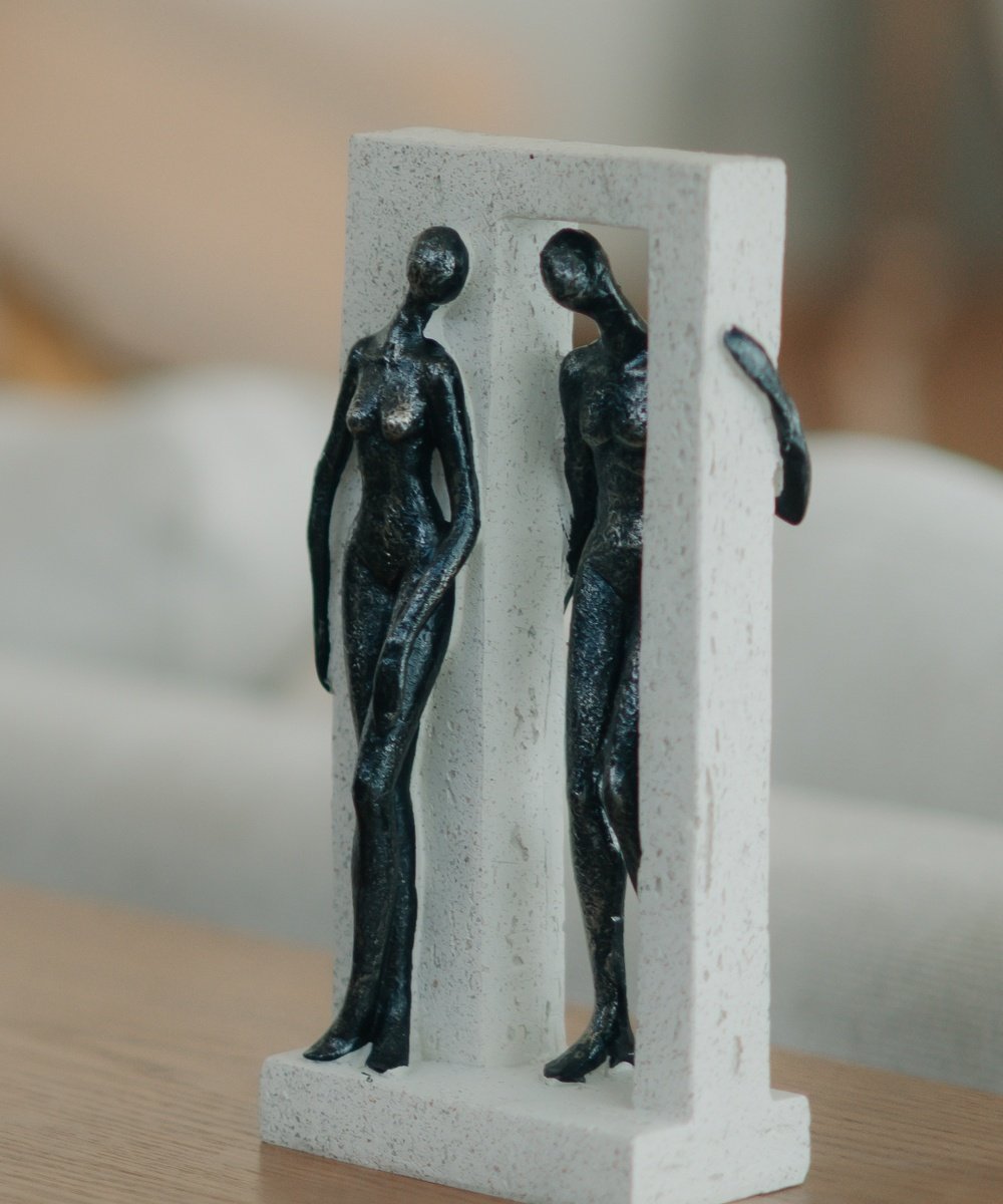 Enhance decor with this Artistic Modern Sculpture, Human Couple Statue – a striking tabletop accent ideal for shelves, desks, and contemporary interiors.