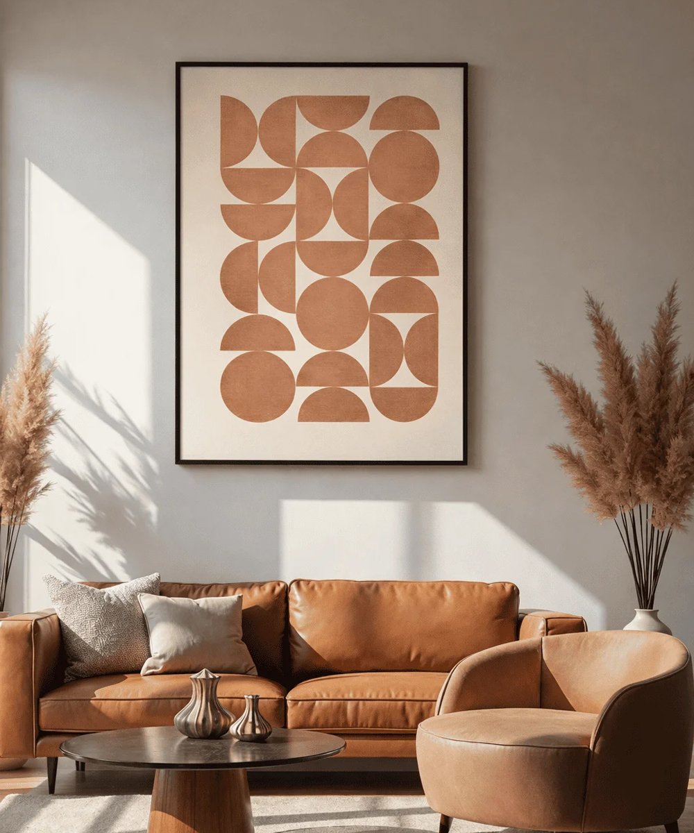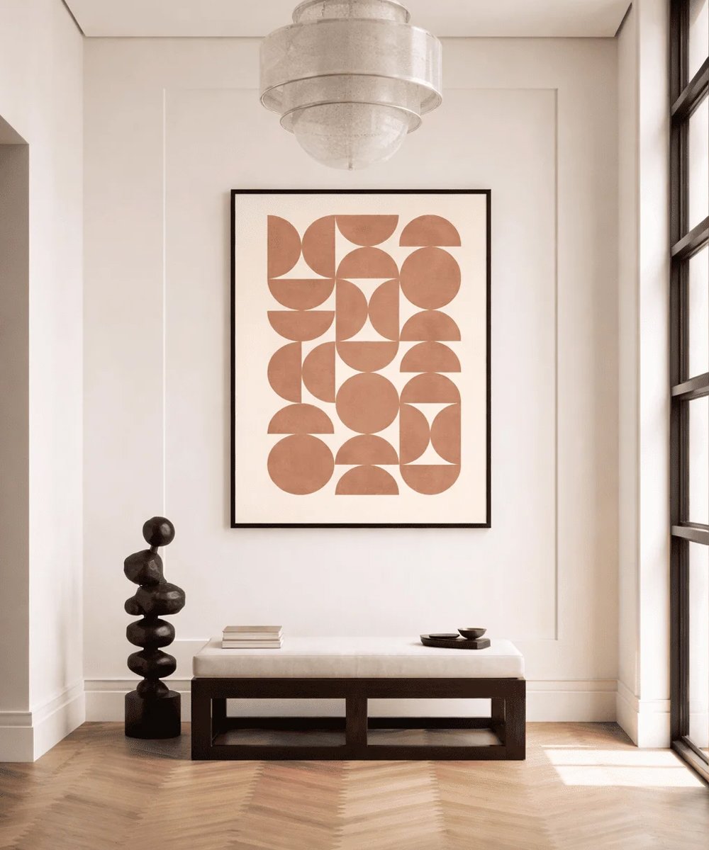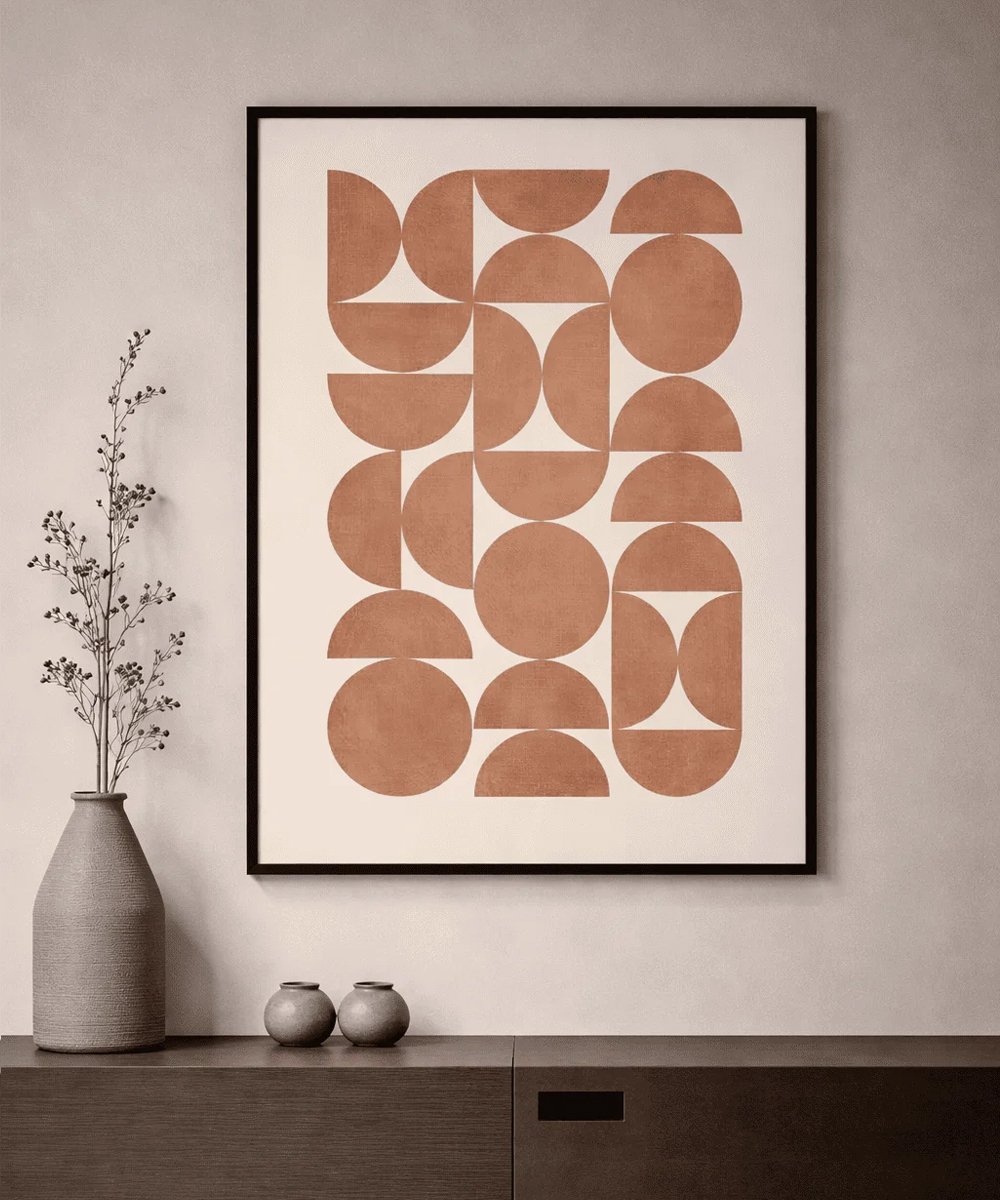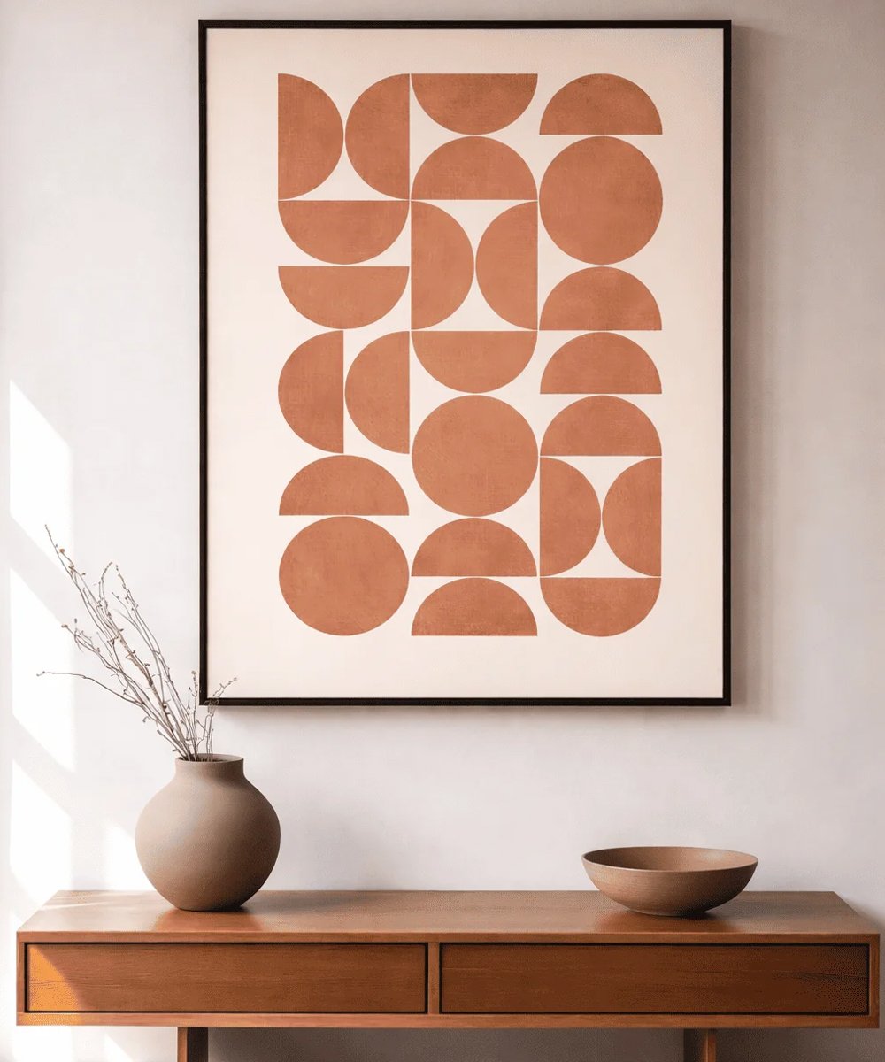 A masterclass in modern geometry, the Terracotta Rhythm Canvas brings a calm, balanced energy to your walls. Measuring 60 x 90 cm, its sophisticated interlocking semicircle design and warm earth-toned palette make it a versatile focal point. An ideal choice for Japandi, Mid-Century Modern, or Minimalist interiors.