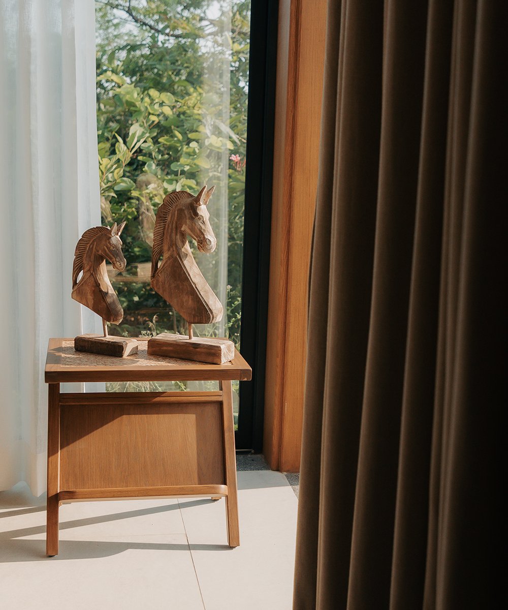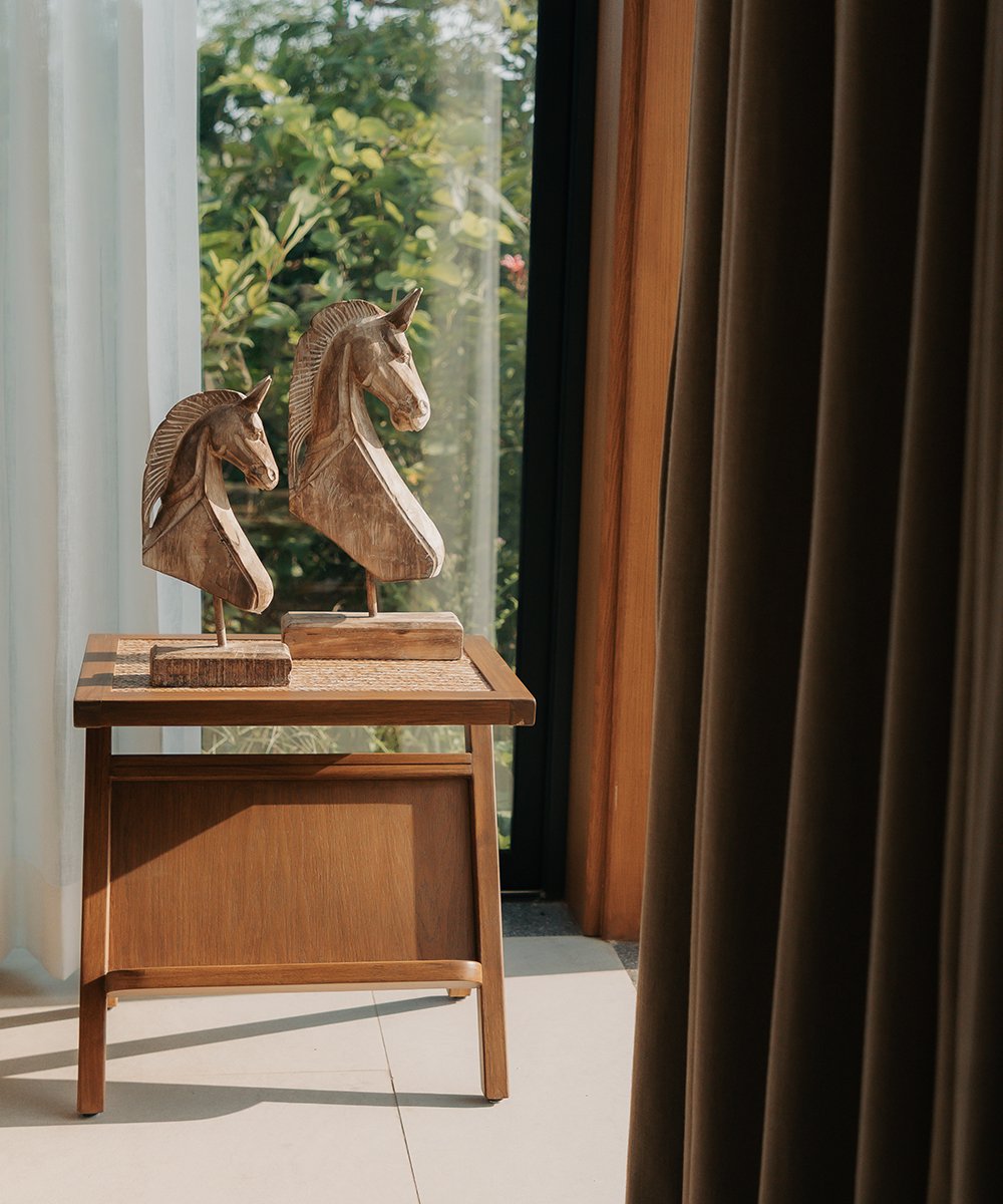 • Dynamic Z-Frame Architecture: A bold, angular wooden frame that provides a sense of movement and open, airy space.