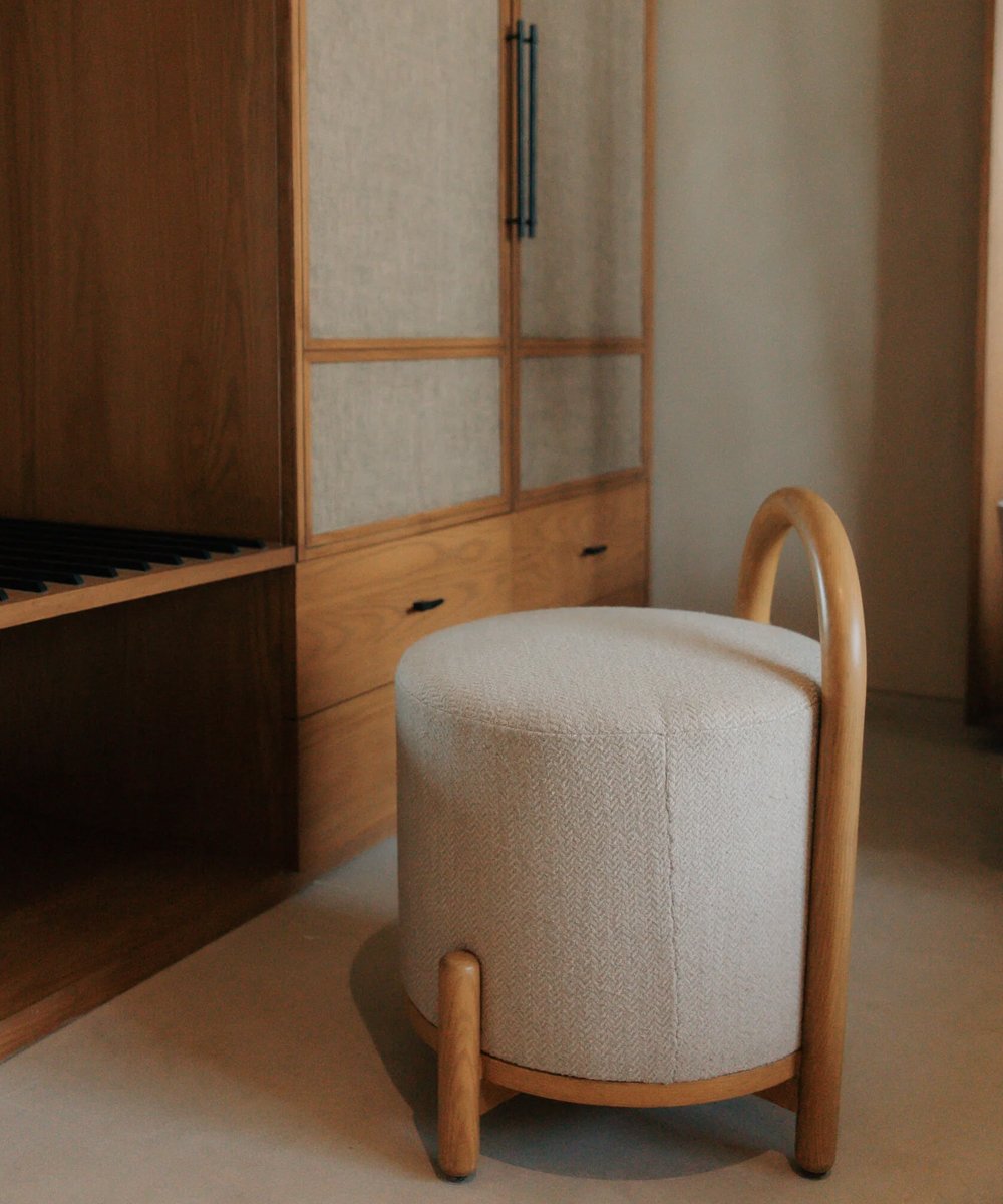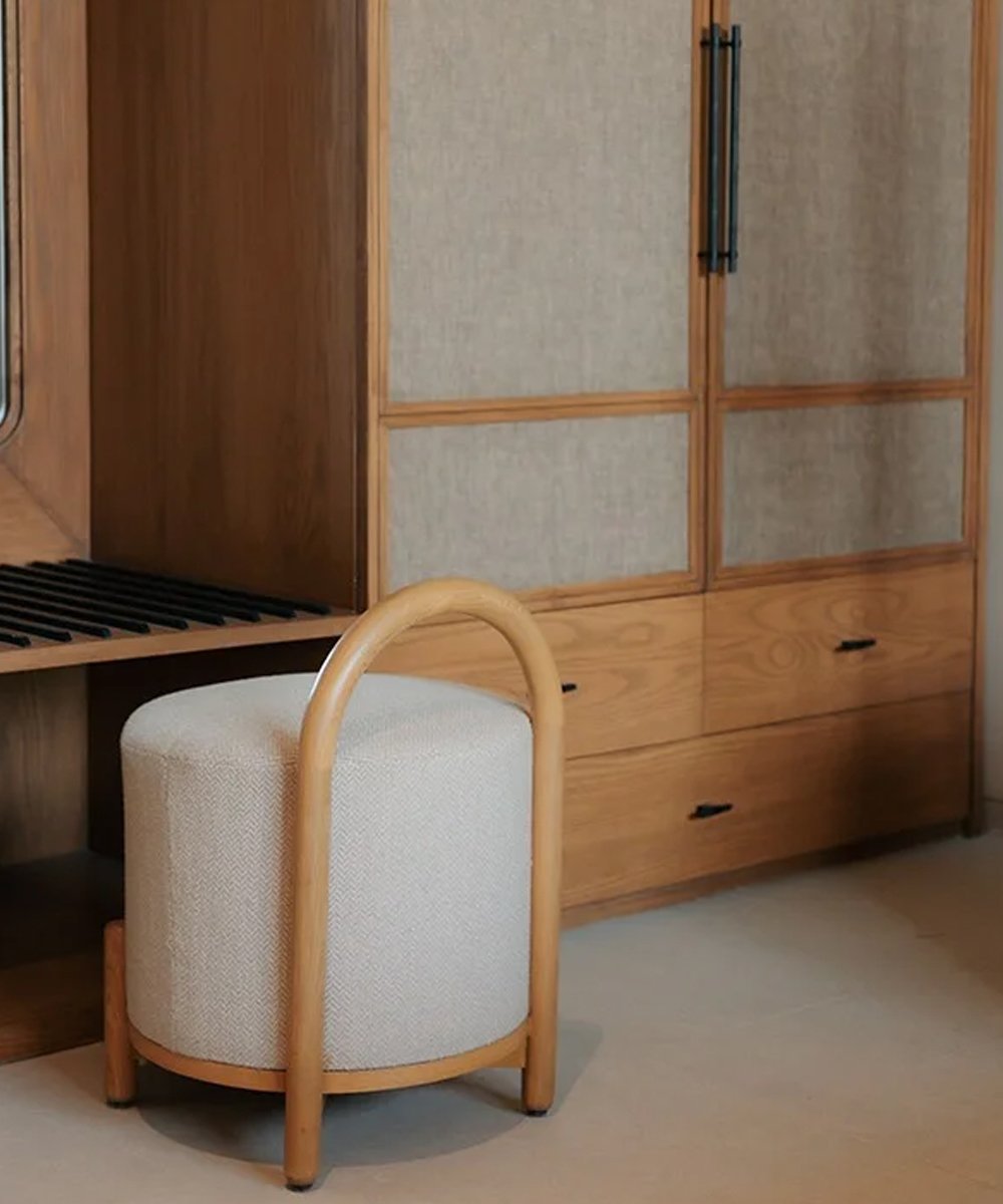 - Premium Bouclé Upholstery: The cylindrical seat is wrapped in high-density textured bouclé fabric for a soft, tactile, and luxurious feel.